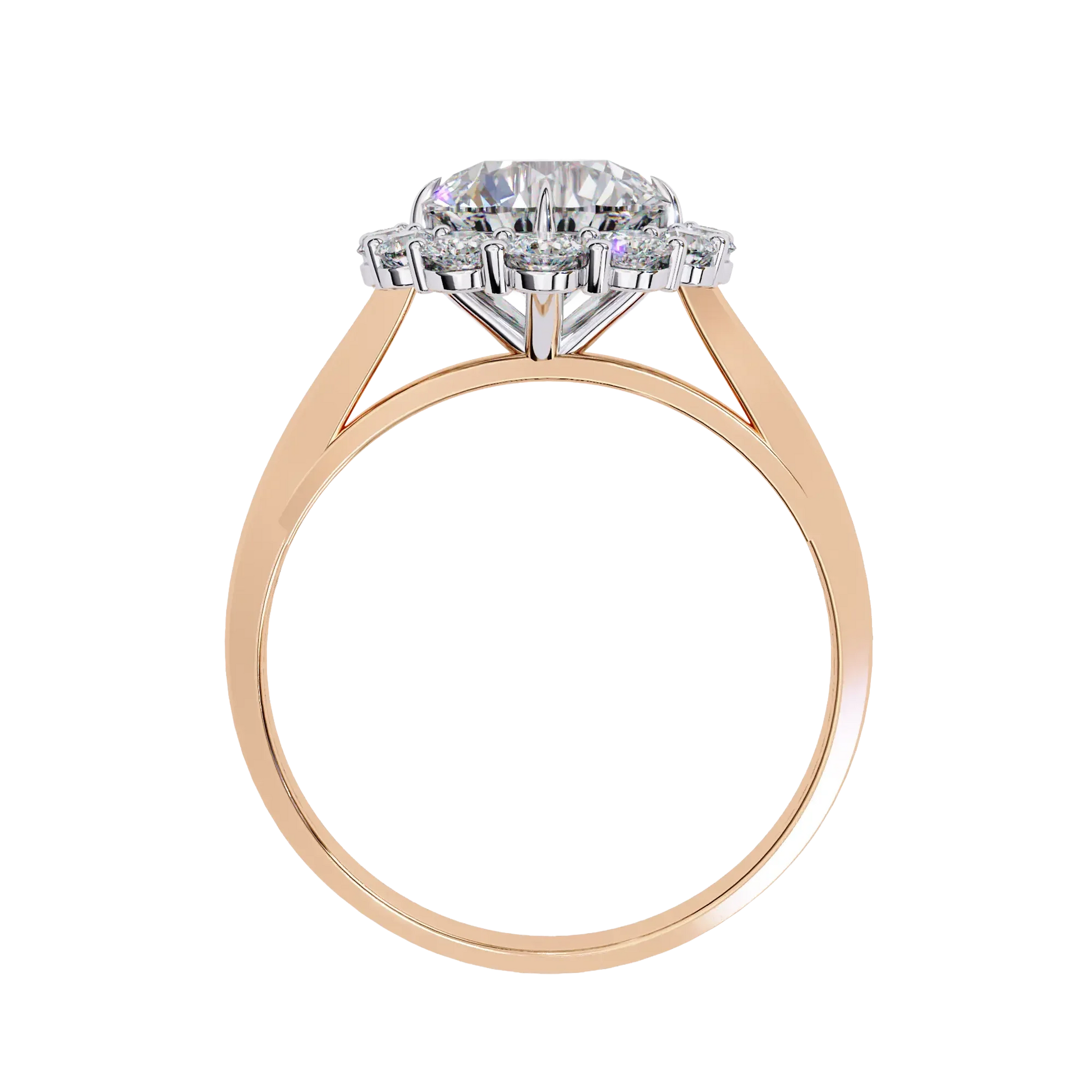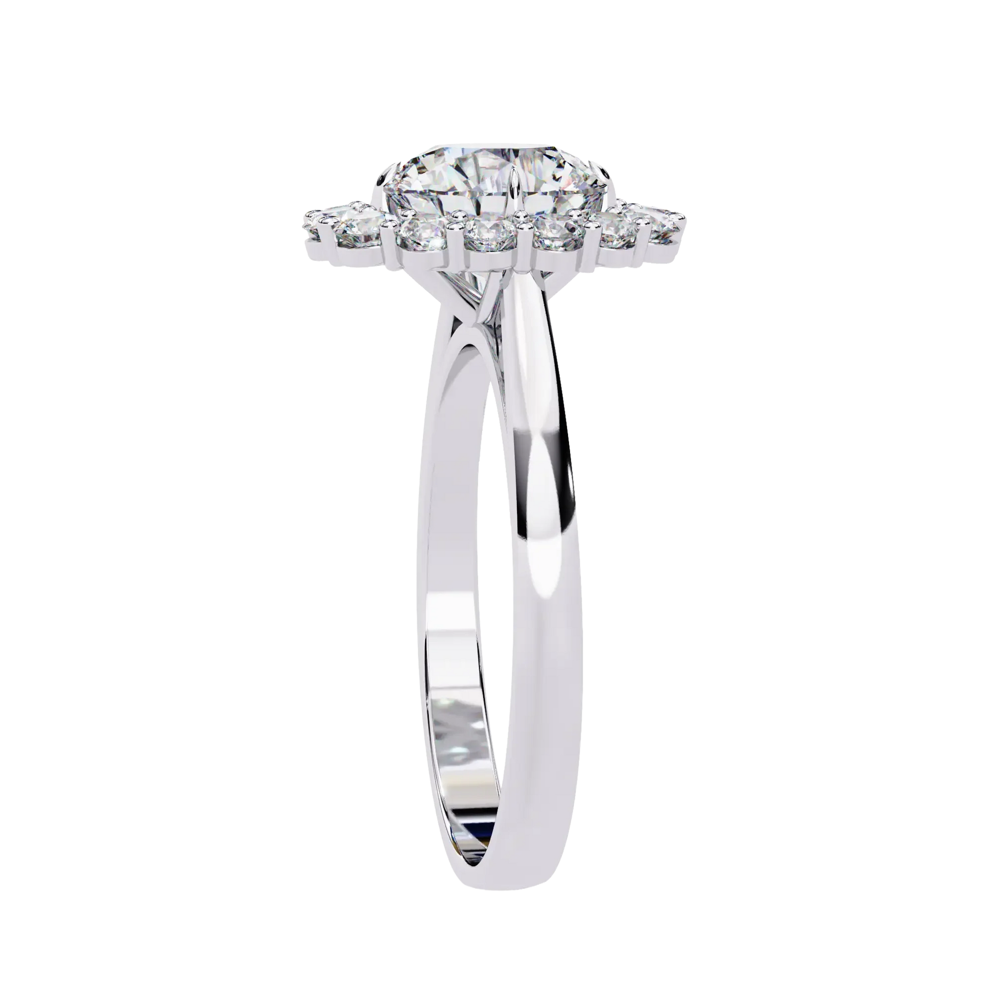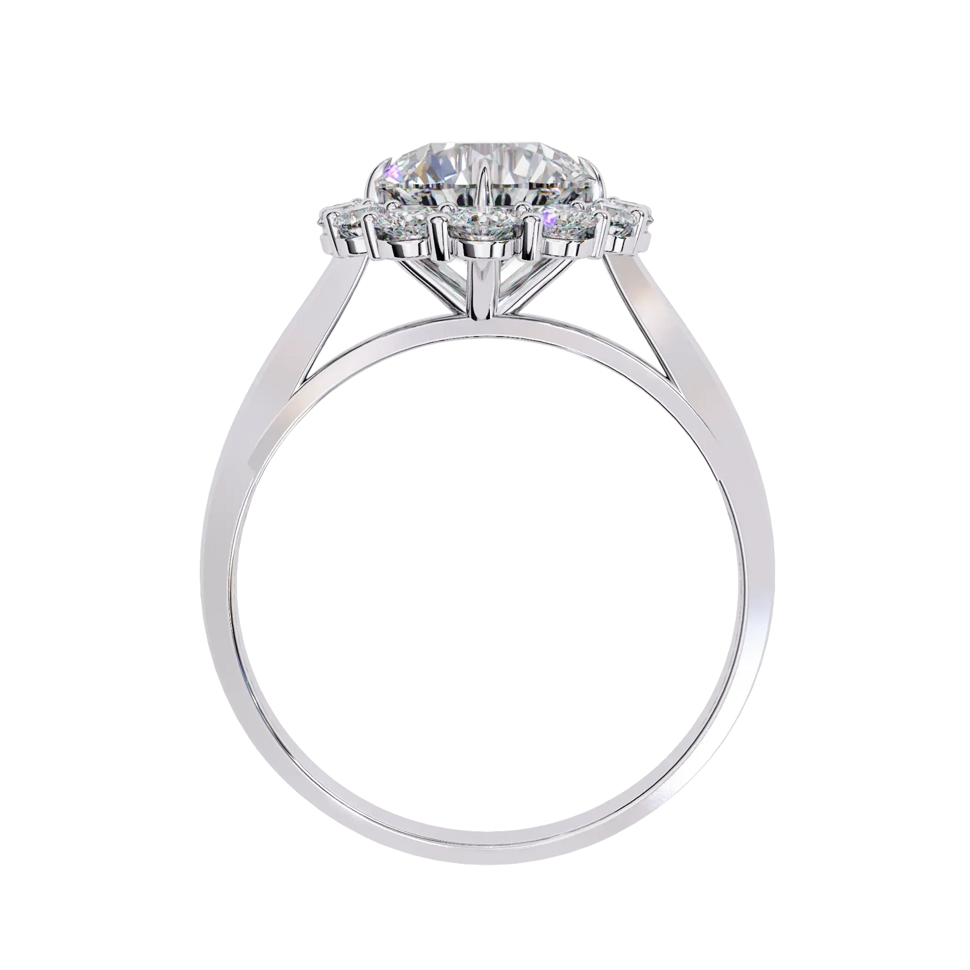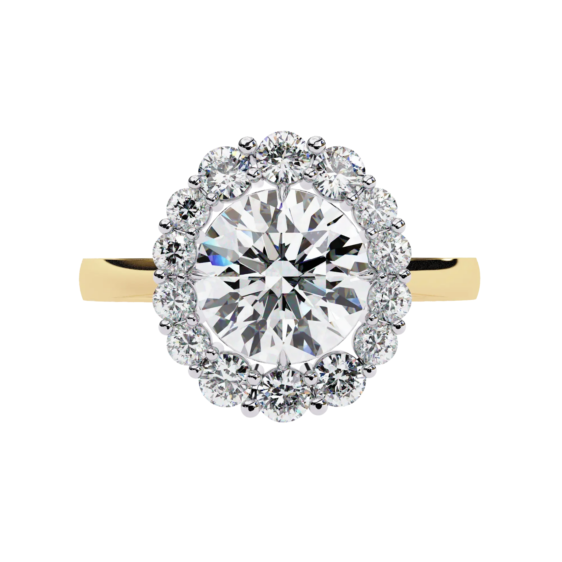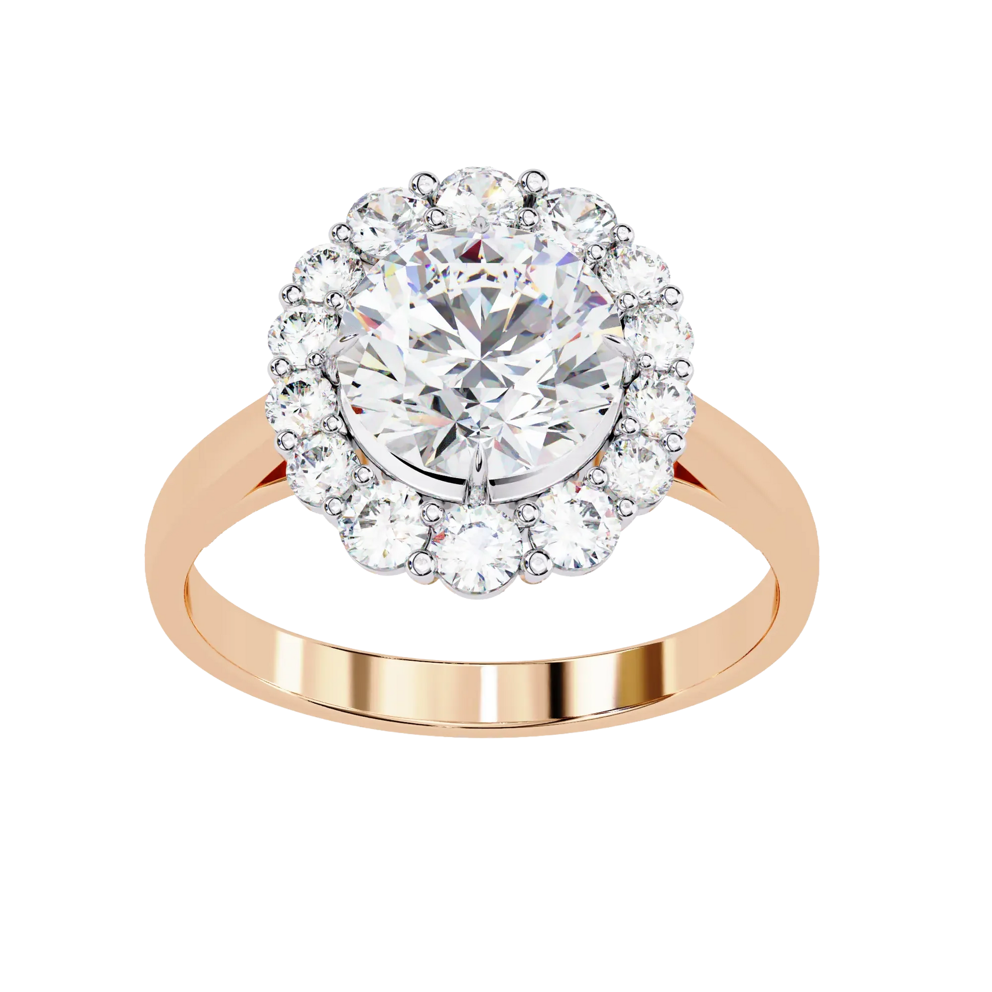 A timeless classic, this halo ring features a dazzling 1.5 carat round brilliant center diamond, surrounded by approximately 0.60 carat of sparkling round side diamonds. Set in a sleek white gold band, this design offers unmatched brilliance and elegance—perfect for engagements, anniversaries, or special celebrations that deserve everlasting sparkle.
