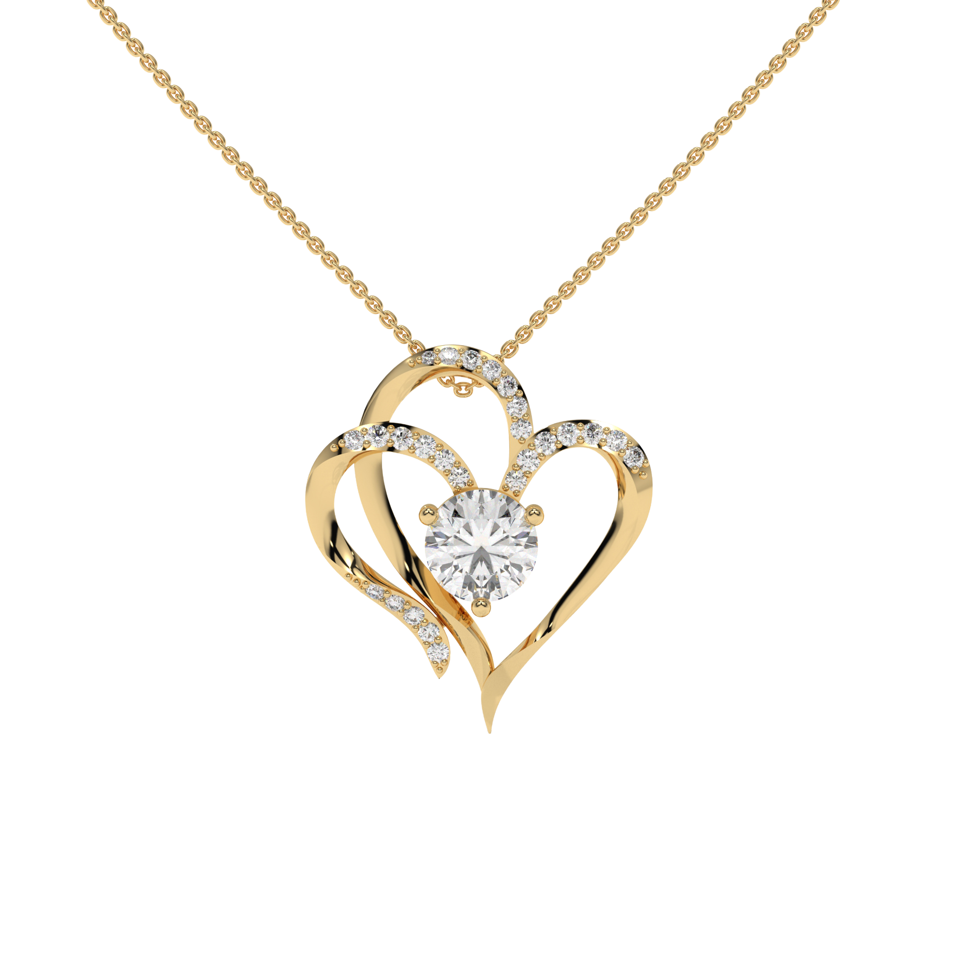 A graceful open-heart pendant adorned with a brilliant center stone and delicate accents, symbolizing timeless love and elegance.