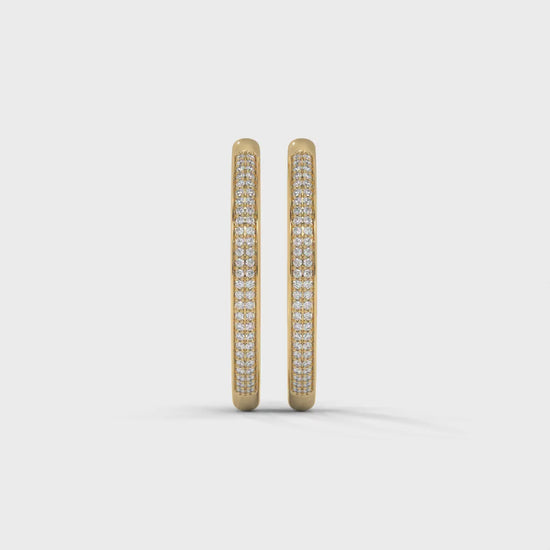 Slim, elongated hoops encrusted with pavé-set diamonds, offering a refined sparkle and graceful style for any occasion.