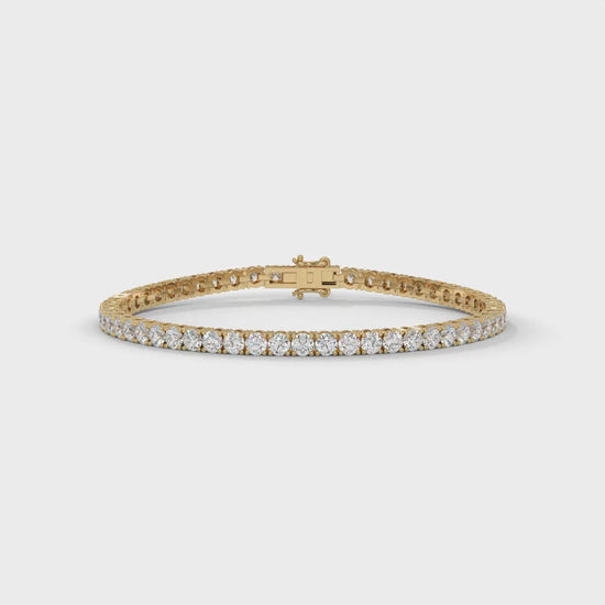 A classic tennis bracelet adorned with brilliant round-cut stones, seamlessly set in timeless elegance for everyday luxury and sophistication.