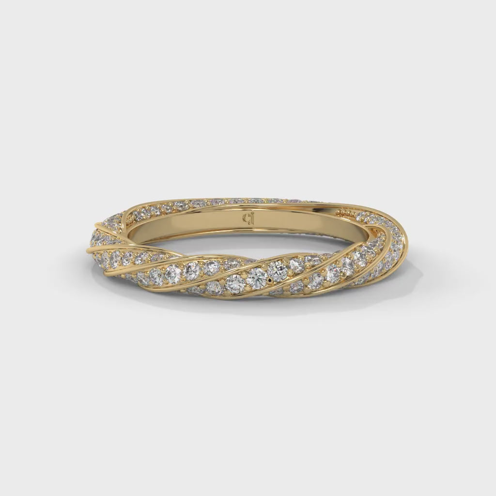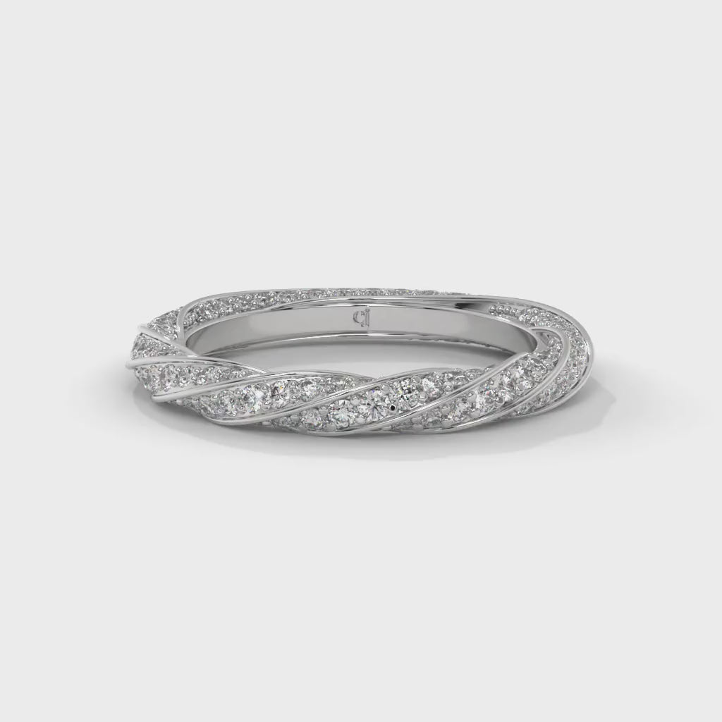 An enchanting eternity band featuring interwoven criss-cross diamond rows, symbolizing infinite elegance, harmony, and everlasting brilliance in timeless design.