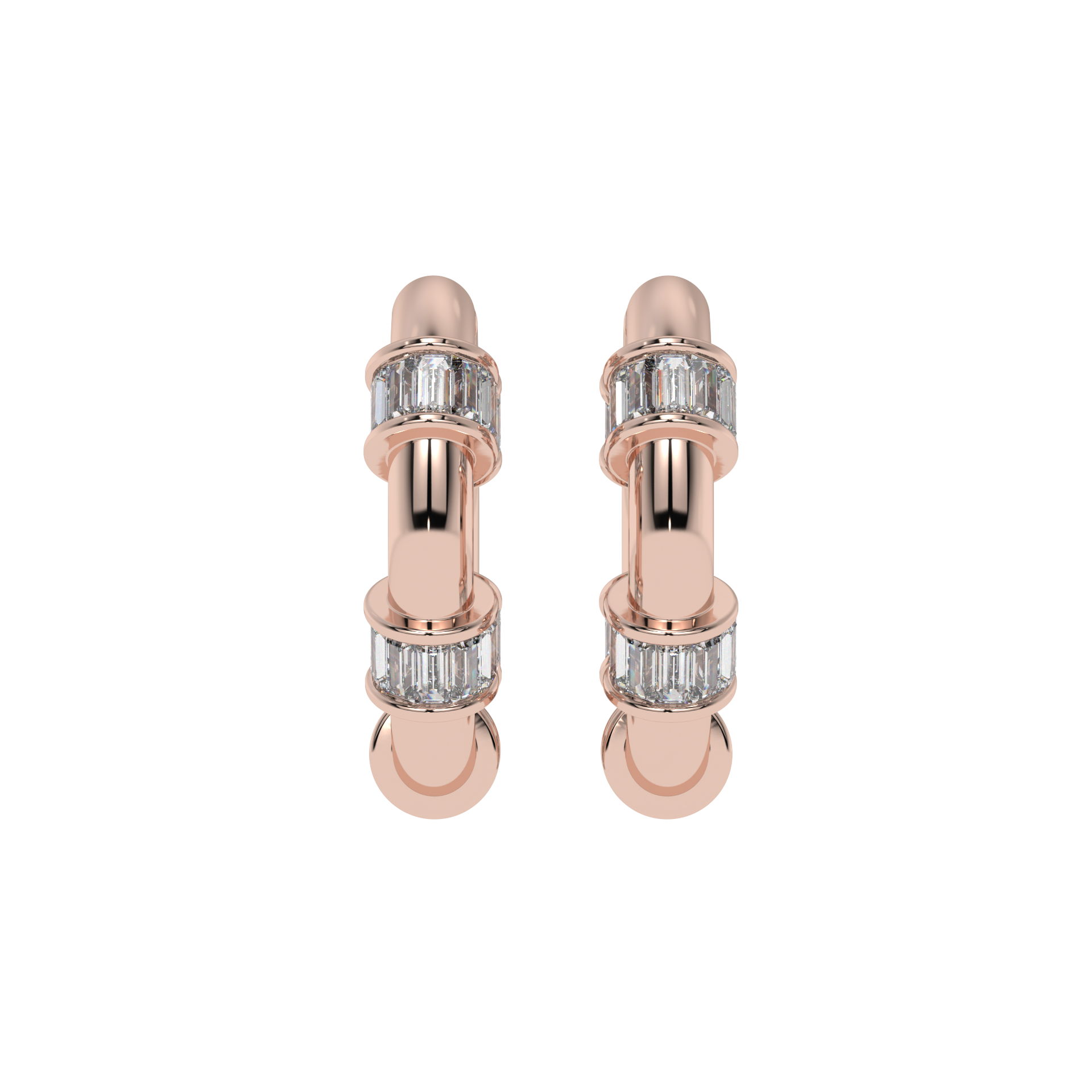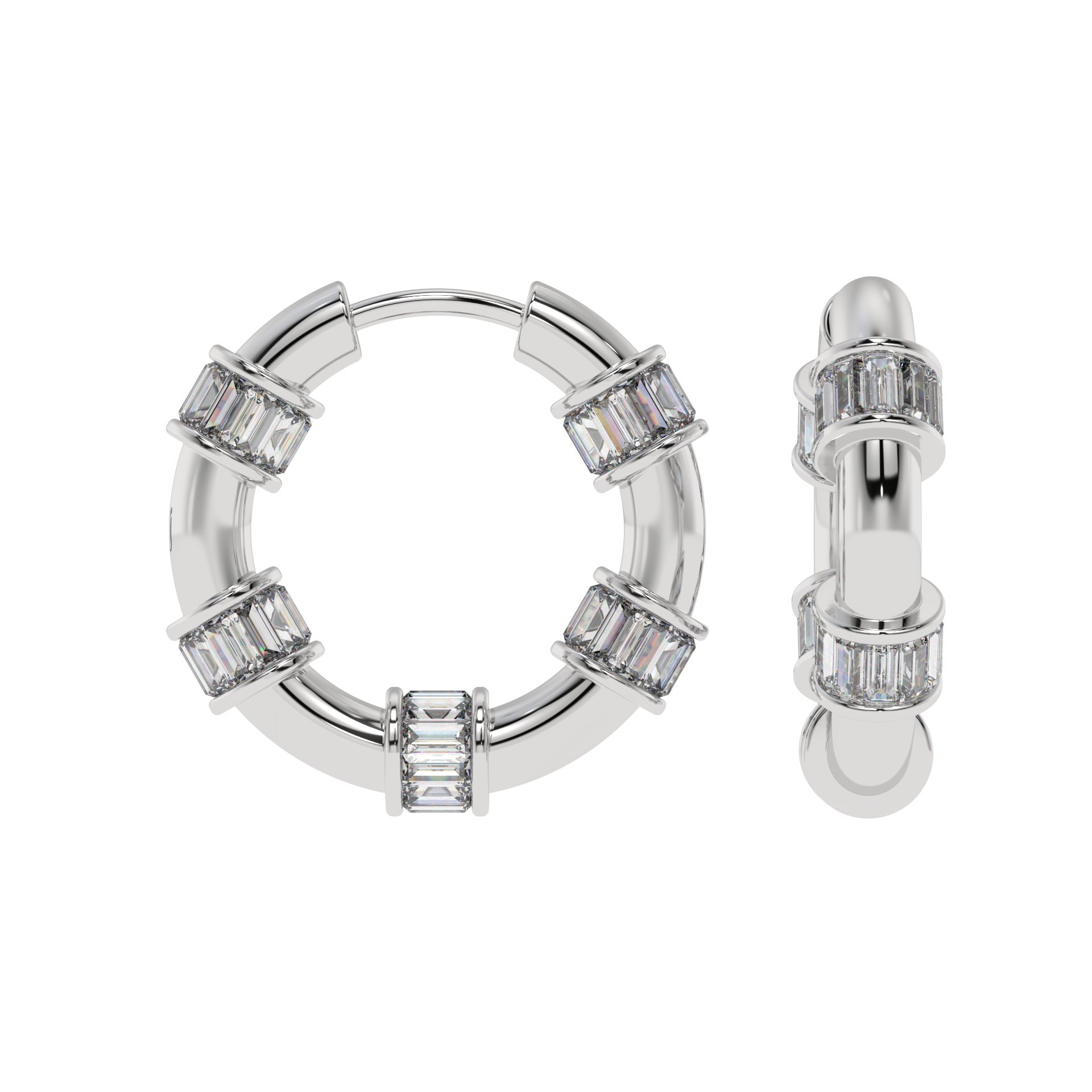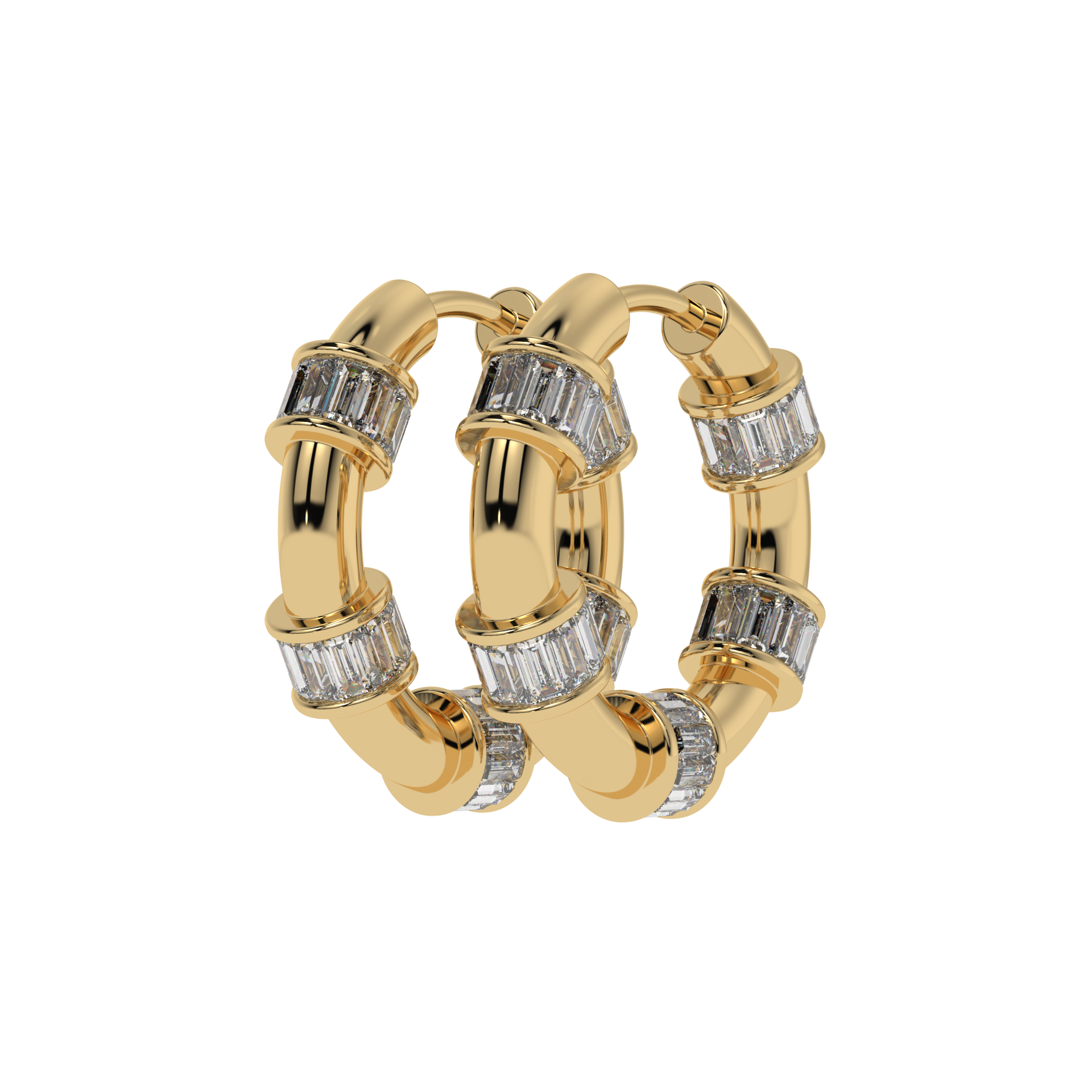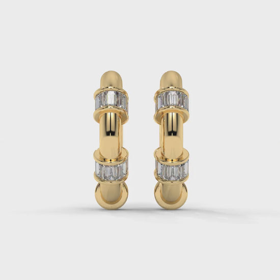 Elegant hoops adorned with sparkling baguette-cut diamonds, blending modern sophistication and timeless charm for a luxurious everyday look.